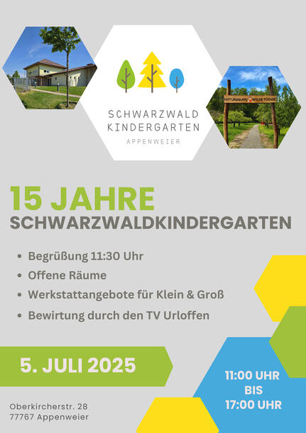 Der Schwarzwaldkindergarten feiert in diesem Jahr sein 15-jähriges Bestehen und lädt alle Familien, Freunde und Interessierten zu einem besonderen Fest ein.