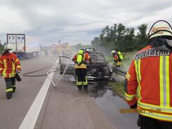 Am Dienstagabend wurden die Feuerwehren Appenweier und Offenburg zu einem Fahrzeugbrand auf die Autobahn 5 gerufen. Nach einem Unfall wegen eines Reifenplatzers, fing ein PKW Feuer. Beim Eintreffen der Einsatzkräfte stand das Fahrzeug bereits in Vollbrand auf dem Seitenstreifen. Die Fahrzeuginsassen konnten sich selbst befreien und wurden vom Rettungsdienst versorgt. Die Feuerwehr Appenweier löschte den brennenden PKW ab. Das Tanklöschfahrzeug der Feuerwehr Offenburg stellte die Wasserversorgung sicher. Während der Löscharbeiten musste die rechte Fahrspur ca. 1 Stunde gesperrt werden.