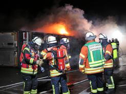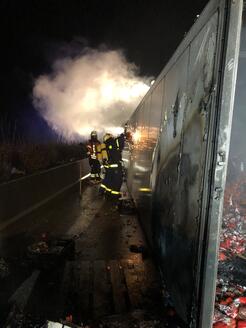 Die Brandbekämpfung des LKW stellte sich als aufwendig heraus, da die geladenen Kunststoffkisten mit Paprika Feuer fingen und die gesamte Ladung unter Atemschutz ausgeladen werden musste um an die brennenden Glutnester im Inneren des Laderaum zu gelangen.