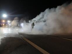 Zu einem Fahrzeugbrand auf der BAB 5 in Fahrtrichtung Achern wurden die Feuerwehren aus Appenweier und Offenburg am Heiligabend um 21 Uhr alarmiert. Da sich die Brandausbreitung auch auf die Gegenfahrbahn ausstreckte, wurde ebenfalls die Feuerwehr Achern auf der Gegenfahrbahn alarmiert.