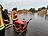Der anhaltende Dauerregen am Freitag führte auf einem Betriebshof im Ortsteil Zimmern zu einer Überschwemmung. Die Betriebseigenen Pumpen kamen mit den Wassermassen nicht mehr zurecht, so dass die Feuerwehr zur Hilfe gerufen wurde. Mit Tragkraftspritzen wurde das Wasser aus der Senke in die Kanalisation gepumpt.